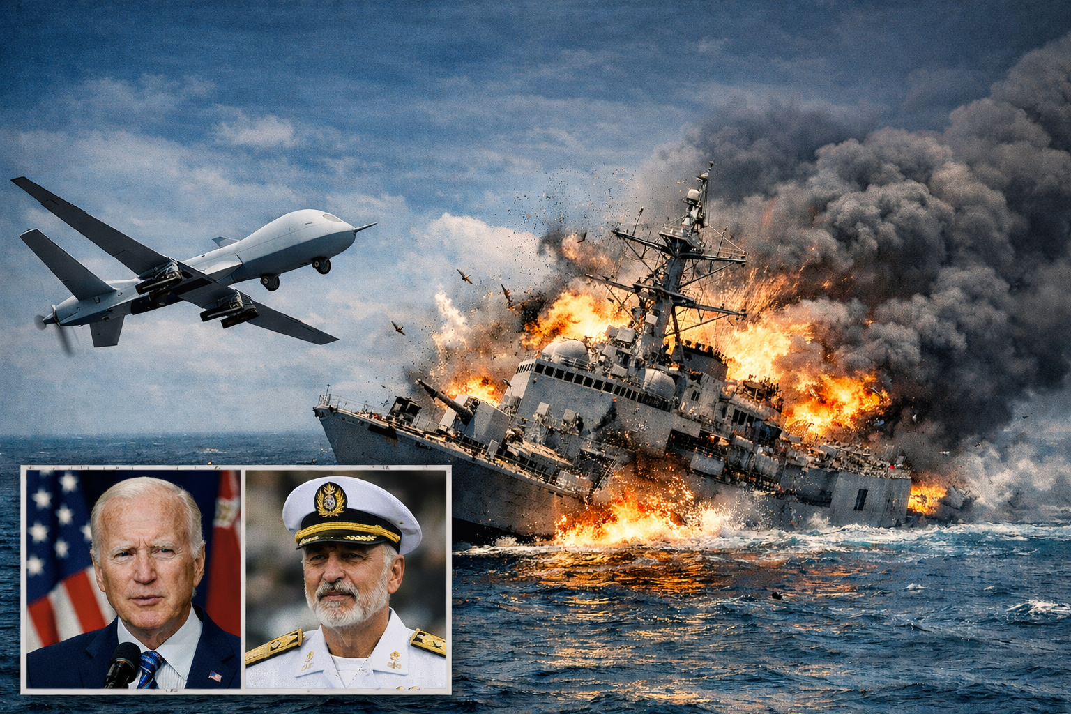 US says Iran Navy sunk As strikes intensify ; Drone carrier Hit and warship set Ablaze